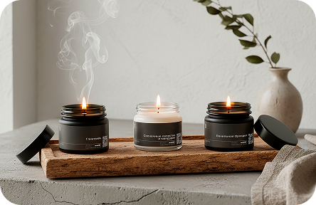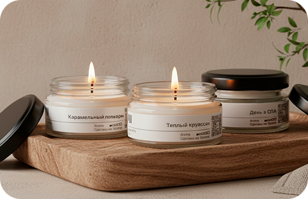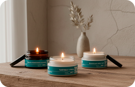 Ароматическая свеча помещена в изящный прозрачный стакан 50 мл, дизайн которого навеян формой классической конусообразной рюмки.