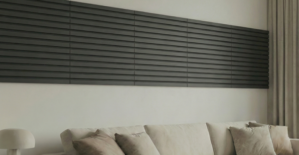 - 3D и фрезерованные панели: игра света и тени. Наши рельефные панели — Beats (динамичная геометрия), Wave (плавные волны) и Dune (глубокий рельеф до 25 мм) — добавляют стене объём и фактуру. Интерьер буквально меняется в течение дня: утренний боковой свет создаёт одну картину, а вечернее освещение — совершенно другую. При вертикальном монтаже 3D-панели усиливают эффект высоты, а их рельеф делает стену не только видимой, но и тактильной.