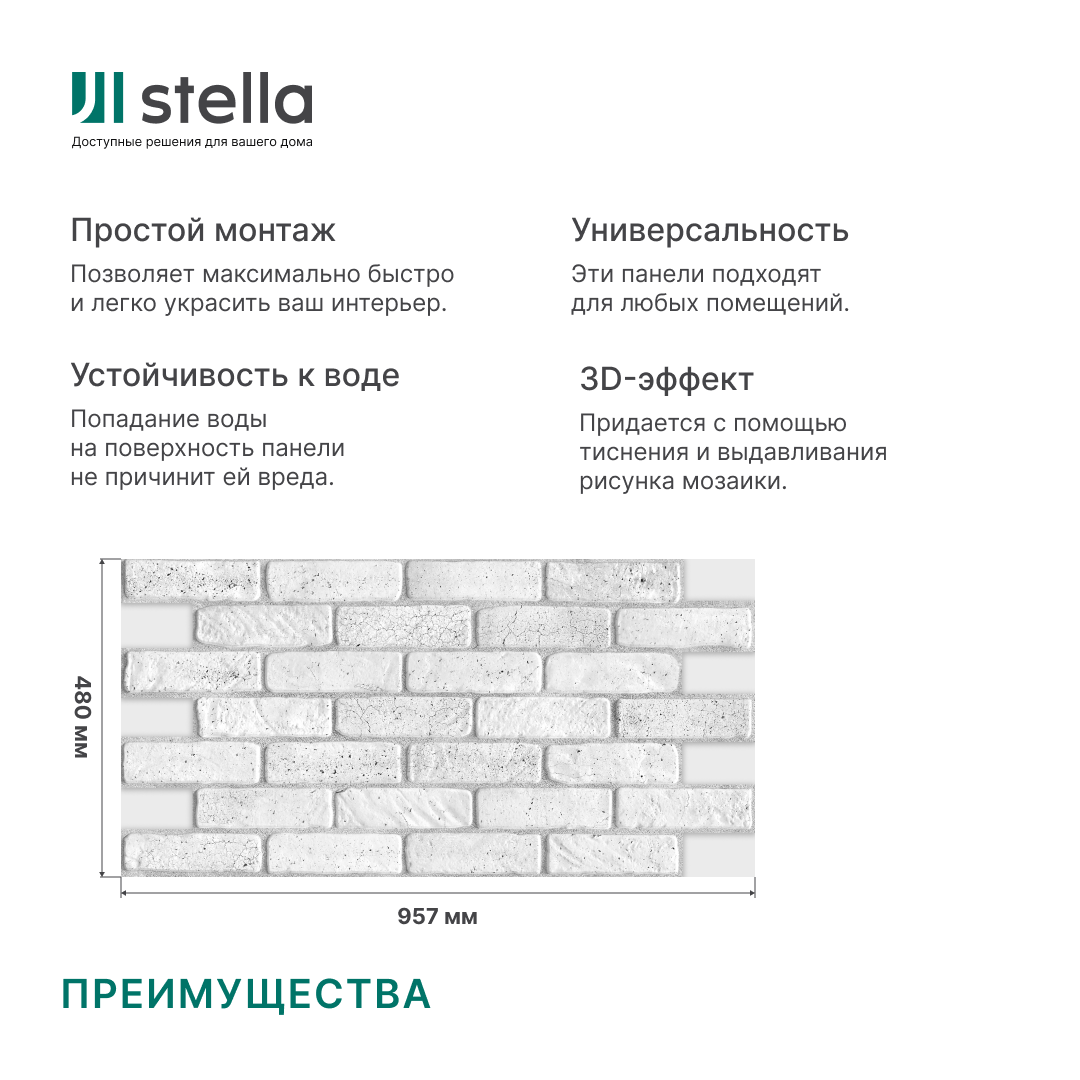 Панель изготовлена из ПВХ премиум качества, обладает 100% устойчивостью к влаге и перепадам температур. Дизайн позволяет создать иллюзию кирпичной декоративной стены, подчеркнуть индивидуальность интерьера. Подходит под стили: лофт и минимализм.