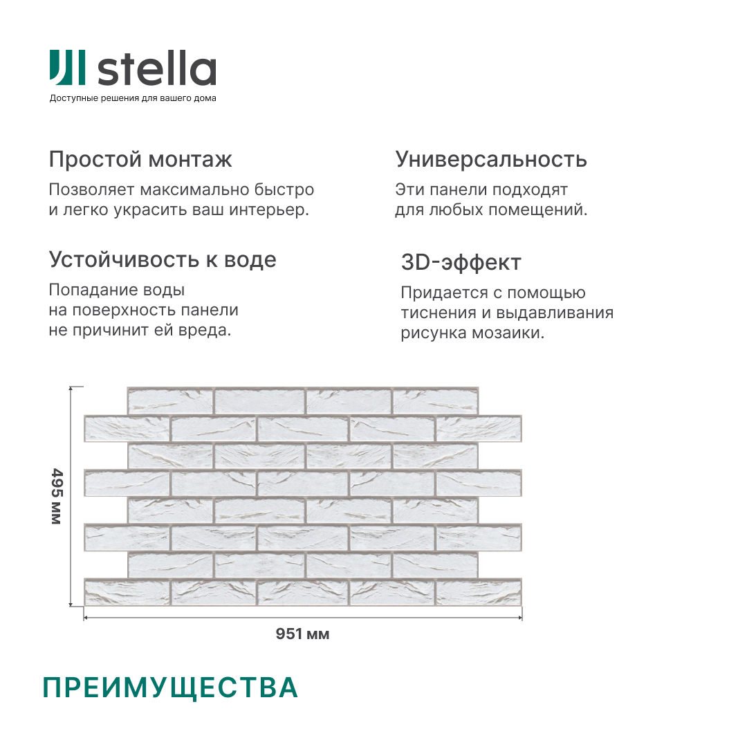 Панель изготовлена из ПВХ премиум качества, обладает 100% устойчивостью к влаге и перепадам температур. Дизайн позволяет создать иллюзию кирпичной декоративной стены, подчеркнуть индивидуальность интерьера. Подходит под стили: лофт и минимализм.