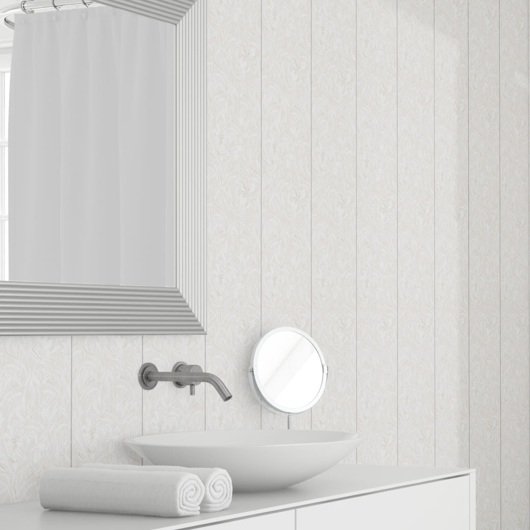 ⁃ Влагостойкость. Панели ПВХ устойчивы к воздействию воды, что делает их идеальным выбором для помещений с повышенной влажностью: ванных комнат, кухонь или прачечных.