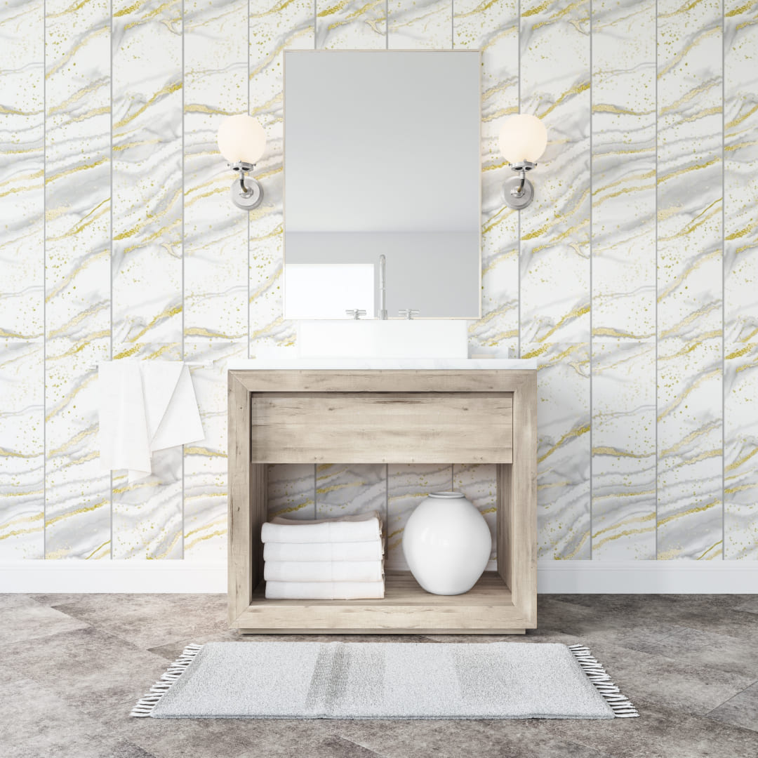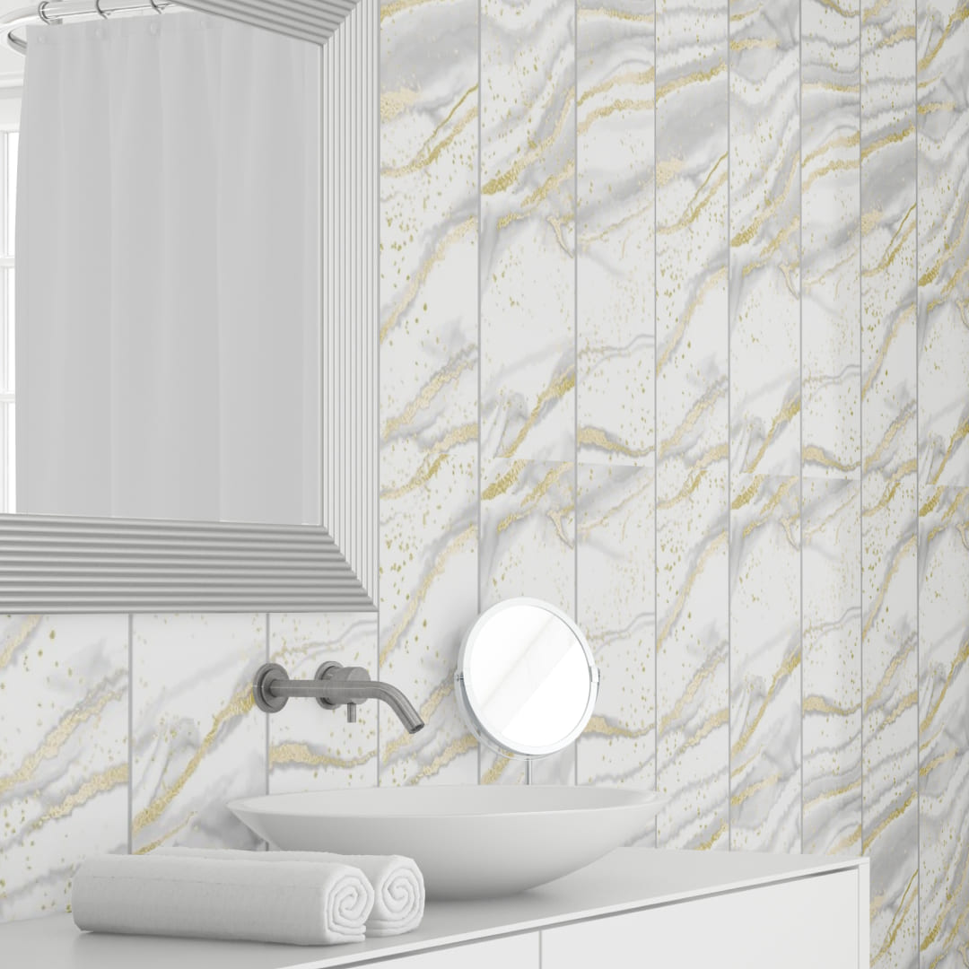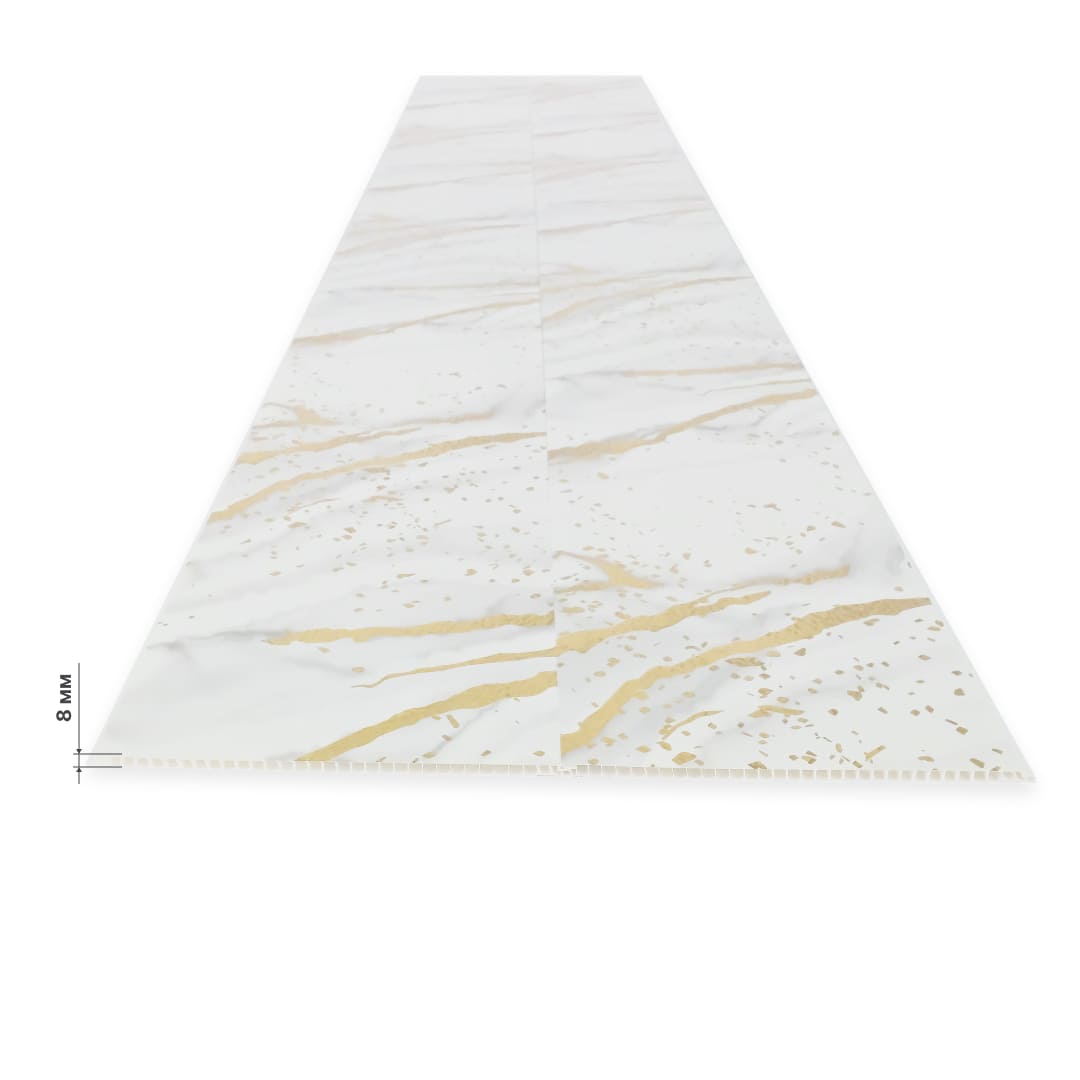 Панель изготовлена из ПВХ высшего качества, обладает толщиной 5мм и 100% влагостойкостью. Идеальное лаковое покрытие имитирует мрамор, позволяет сделать поверхность более глянцевой, устойчивой к выцветанию и появлению царапин.