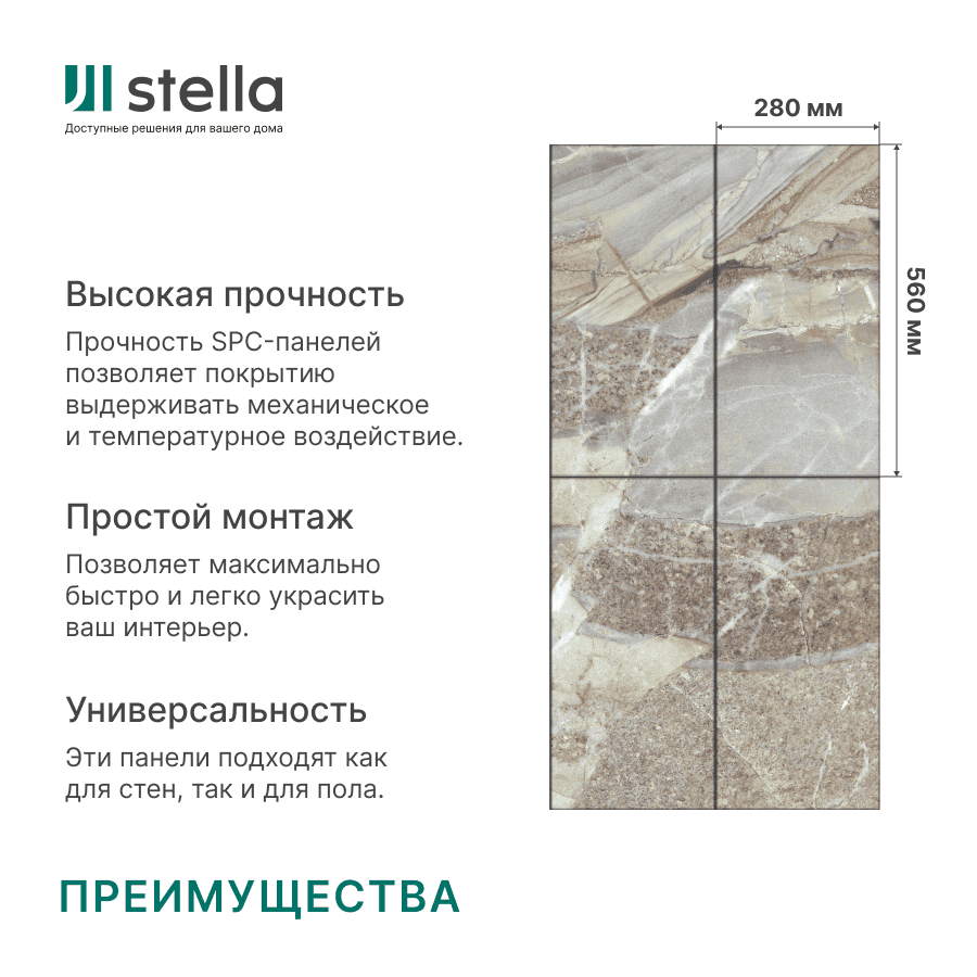 Панель SPC глянец Stella Kerama Антрацит - премиум декор для интерьера.