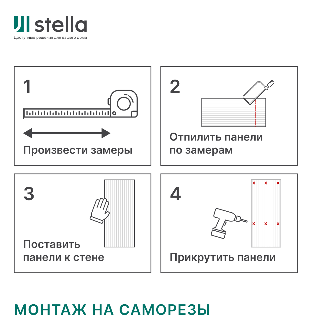 ⁃ Простота установки. Интуитивно понятный монтаж, можно использовать жидкие гвозди;