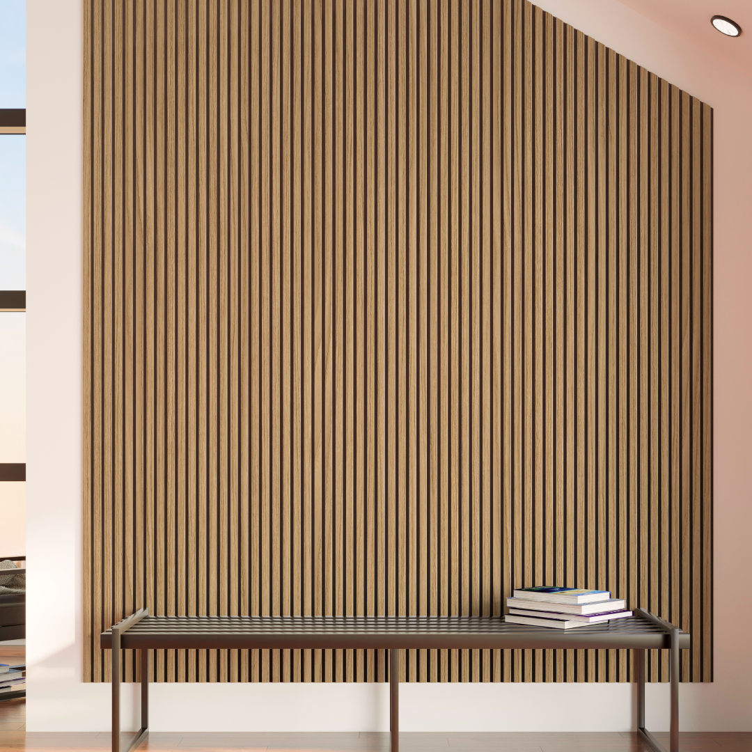 Панель выполнена из прочного МДФ и покрыта декоративной финиш-пленкой с фактурой натурального дуба, которая придаёт поверхности реалистичный и тёплый внешний вид. Благодаря увеличенной длине 2780 мм, панель идеально подходит для облицовки стен от пола до потолка без стыков, что особенно ценно в современных интерьерах.