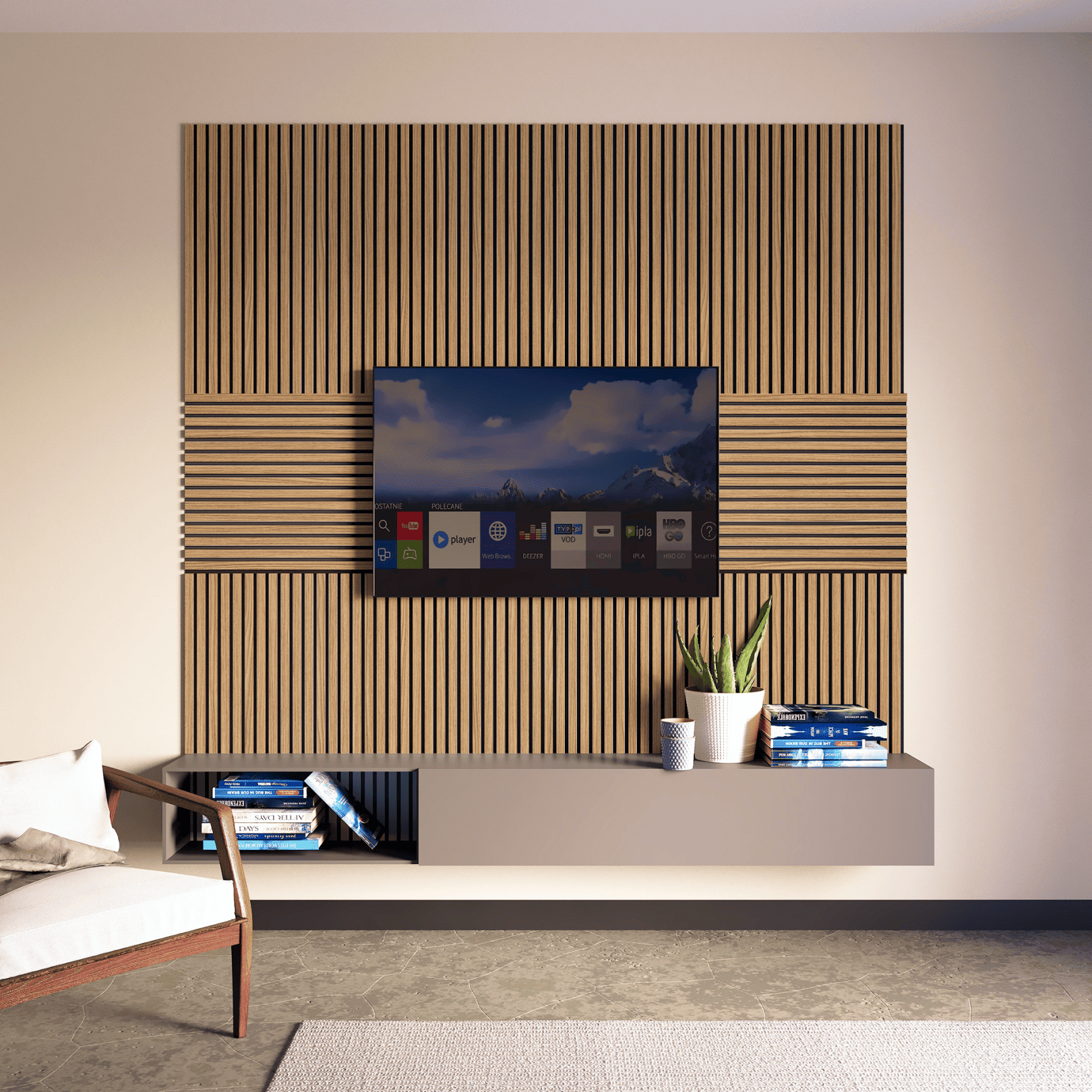 Панели легко монтируются как вертикально, так и горизонтально, что позволяет реализовать любые дизайнерские задумки. Подходят для оформления жилых и коммерческих пространств — от гостиных до офисов и студий.
