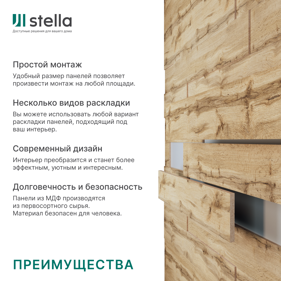 ⁃ Экологичность. Панели изготовлены из натуральных материалов, с заботой о природе;