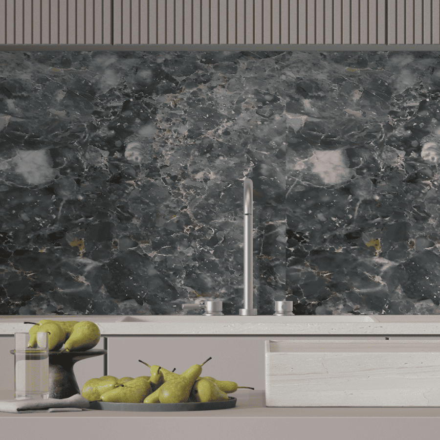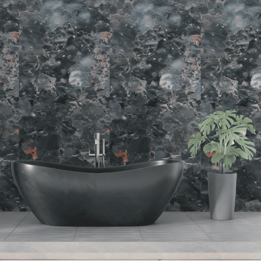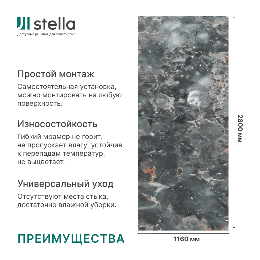 ⁃ Износостойкость. Гибкий мрамор не горит, не пропускает влагу, устойчив к перепадам температур, не выцветает;