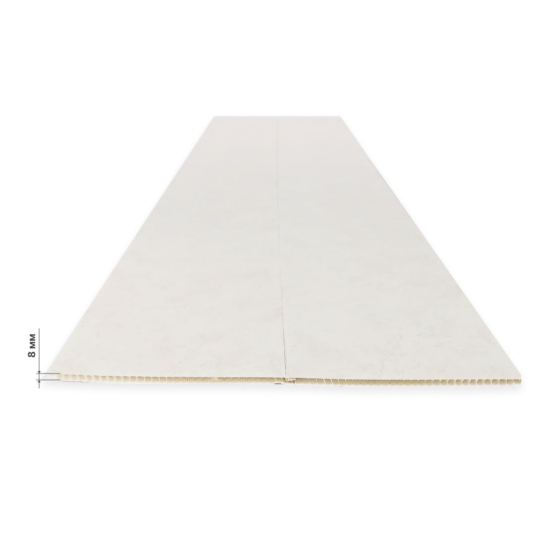 Панель изготовлена из ПВХ высшего качества, обладает толщиной 5мм и 100% влагостойкостью. Идеальное лаковое покрытие имитирует мрамор, позволяет сделать поверхность более глянцевой, устойчивой к выцветанию и появлению царапин.