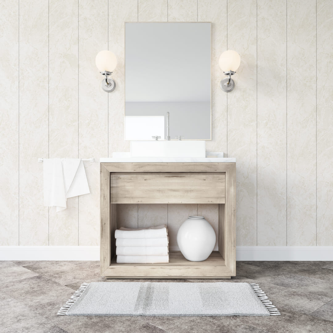 ⁃ Влагостойкость. Панели ПВХ устойчивы к воздействию воды, что делает их идеальным выбором для помещений с повышенной влажностью: ванных комнат, кухонь или прачечных.
