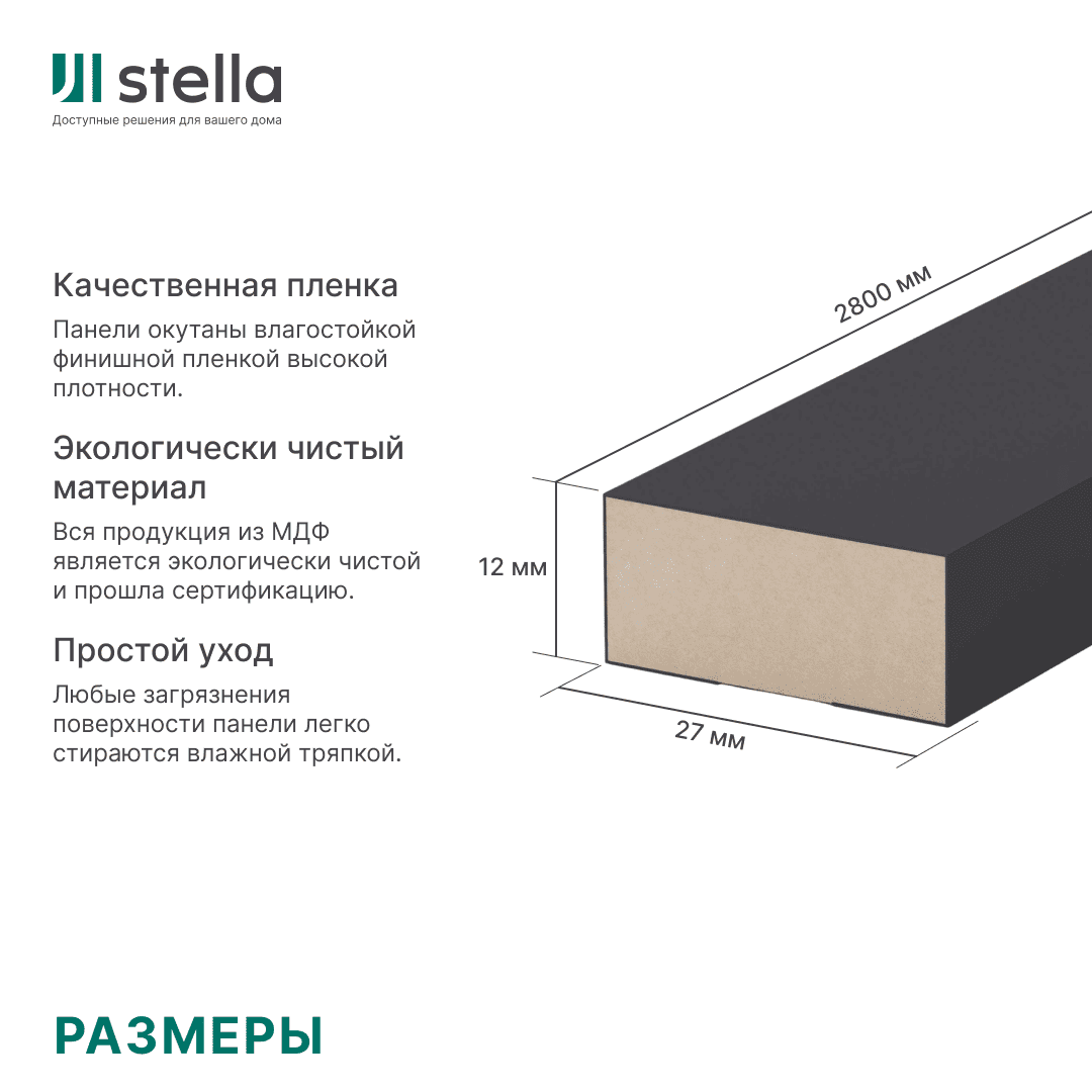 Интерьерная рейка STELLA, модель 12, коллекция De Luxe в цвете Black Lead — это выразительный акцент с графитовой глубиной и индустриальной эстетикой.