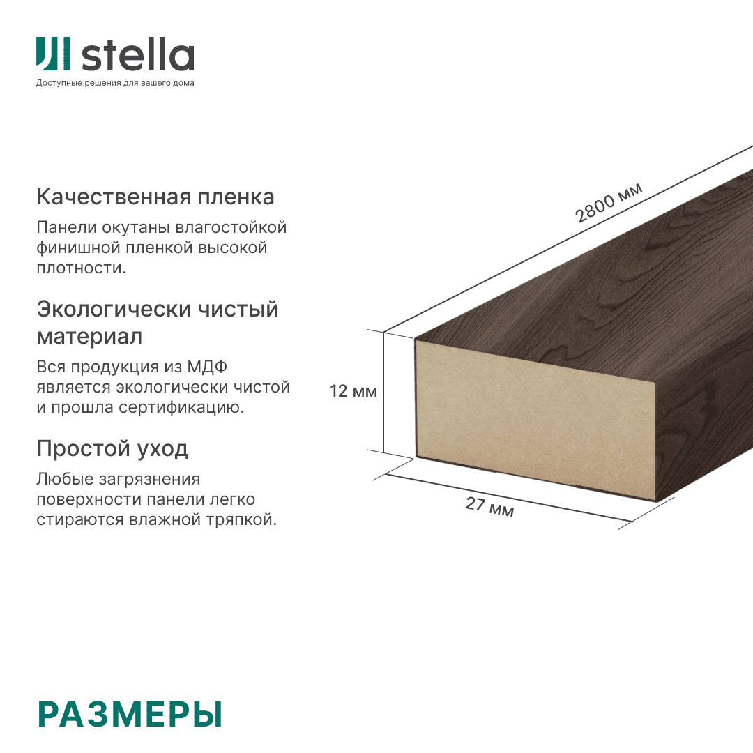 Интерьерная рейка STELLA, модель 12, коллекция Light в оттенке Орех Бразильский — это насыщенная глубина и теплая солнечность экзотического дерева.