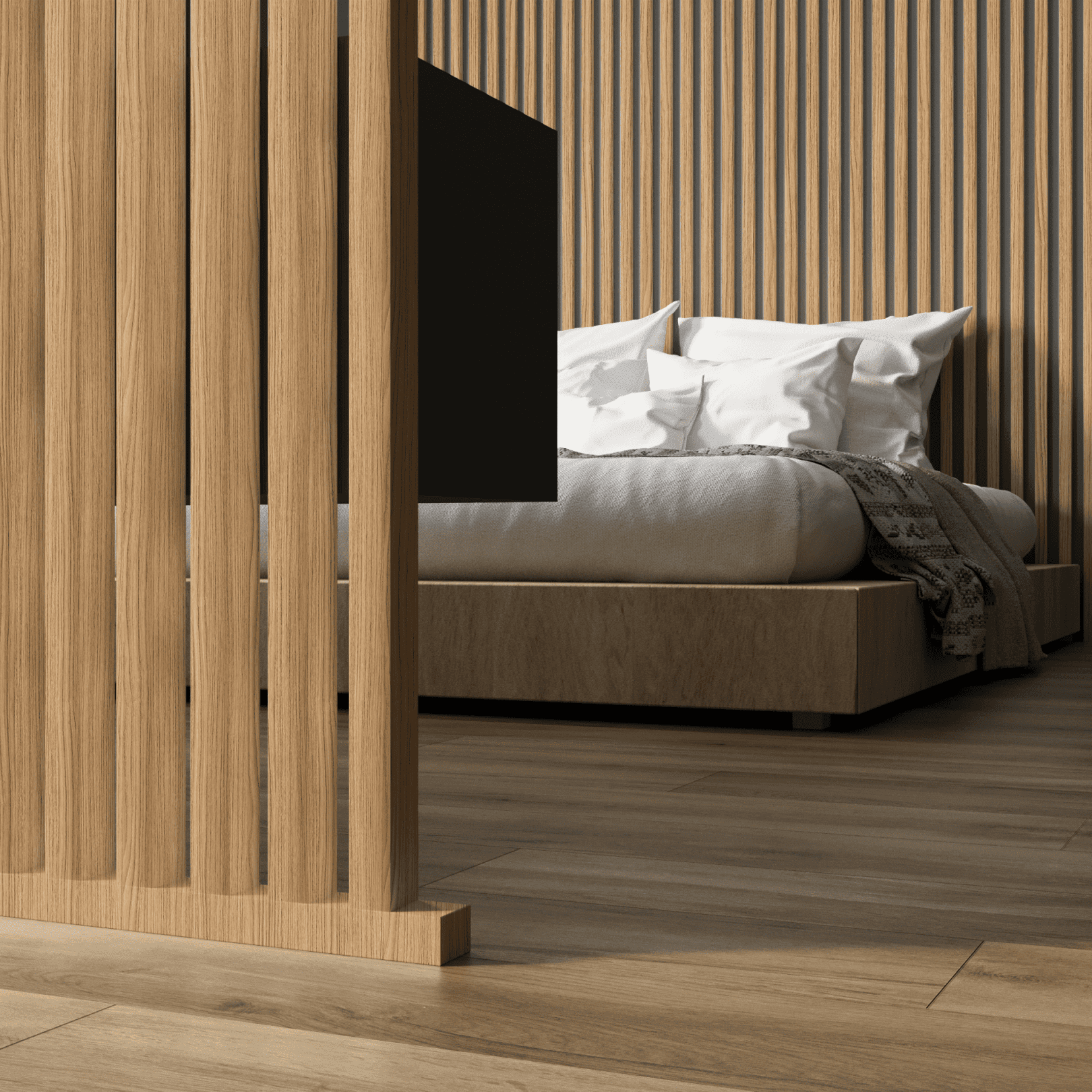 Рейки выполнены из прочного МДФ и покрыты финиш-плёнкой с фактурой натурального дуба. Оттенок Дуб Сальвадор придаёт пространству природную теплоту и визуальный комфорт. Благодаря сдержанным размерам 20×30 мм, рейки Милана легко интегрируются в любой интерьер — от минимализма до современного классического стиля.