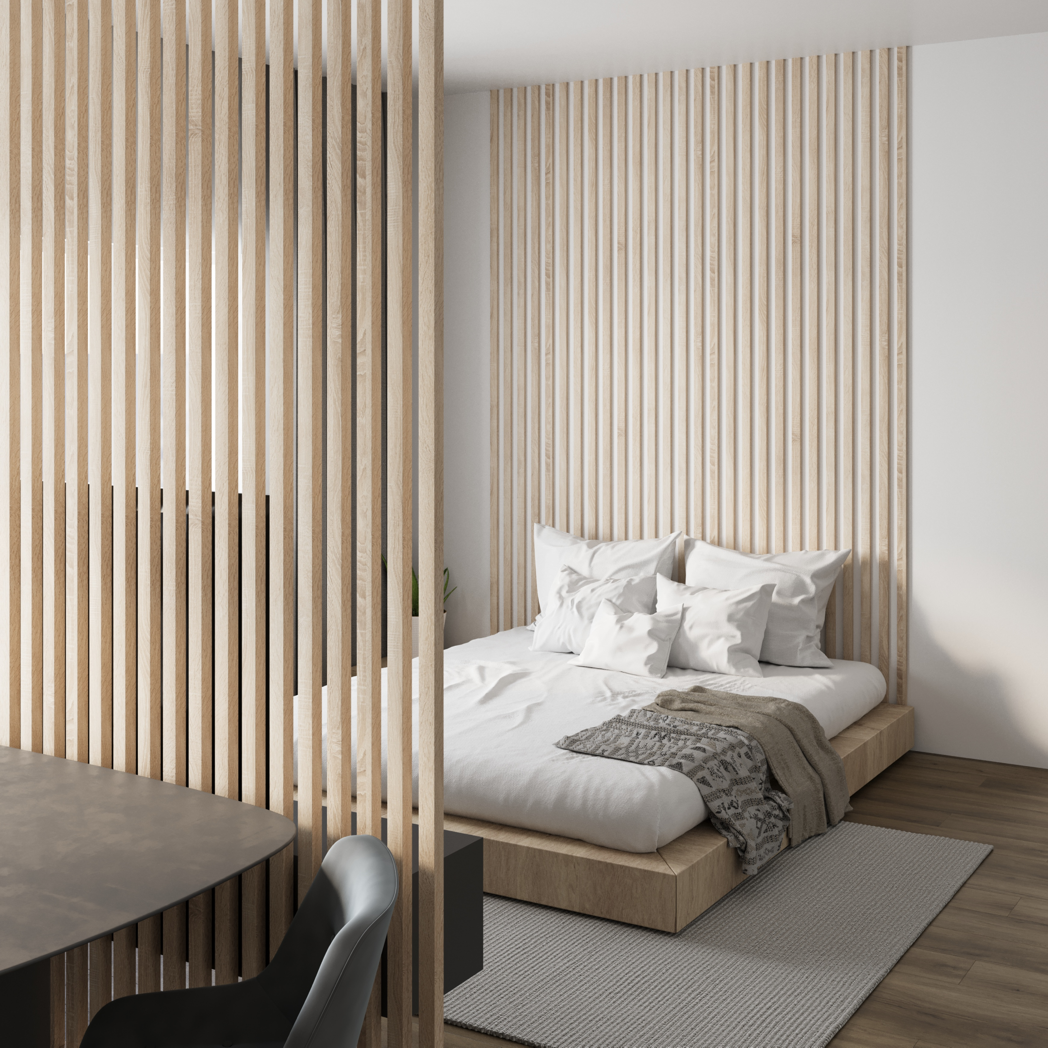 Интерьерные рейки МДФ Stella, модель Планкен, коллекции Standard в классическом оттенке Дуб Сонома – напоминают плавный зимний рассвет.