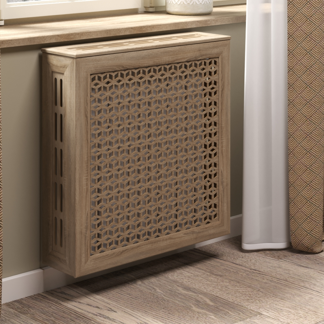 Экран для радиатора МДФ Stella Илона, в элегантном оттенке Дуб Винтаж – это эстетика романтизма, как памятный фотоальбом.