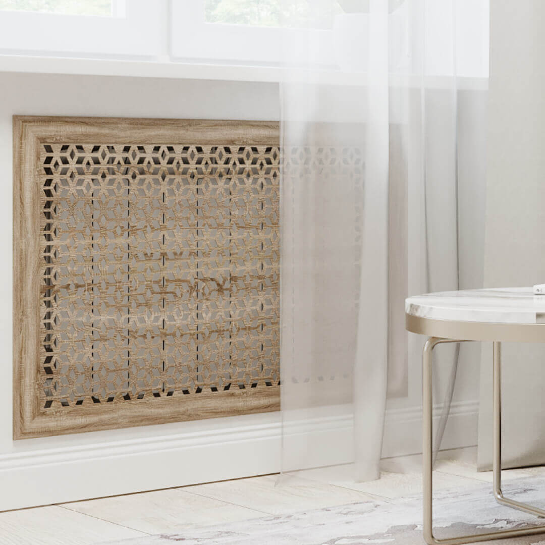 Экран для радиатора МДФ Stella Илона, в элегантном оттенке Дуб Винтаж – это эстетика романтизма, как памятный фотоальбом.