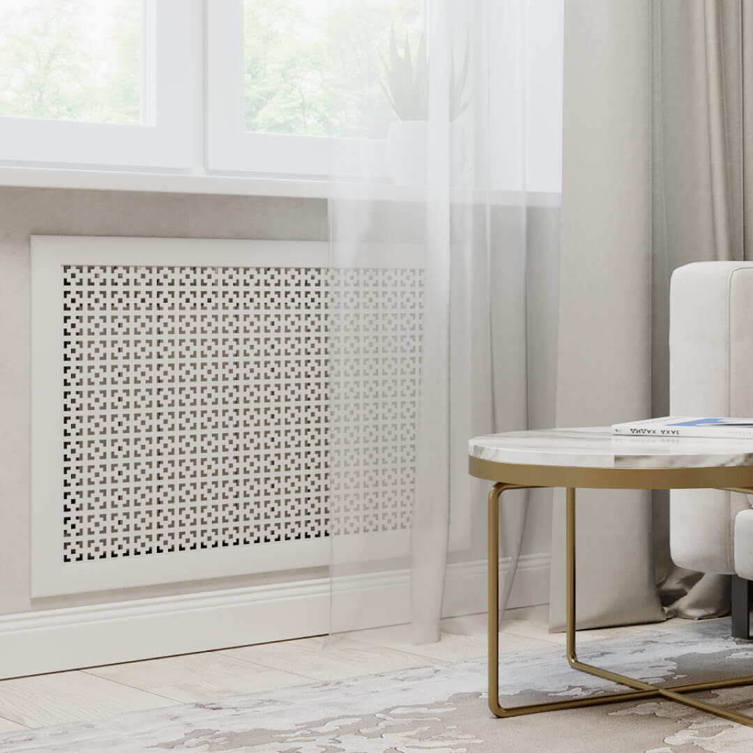 Экран для радиатора МДФ Stella Дамаско, в универсальном белом оттенке – это изысканный способ скрыть визуальный шум в интерьере.