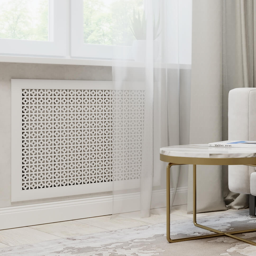 Экран для радиатора МДФ Stella Дамаско, в универсальном белом оттенке – это изысканный способ скрыть визуальный шум в интерьере.