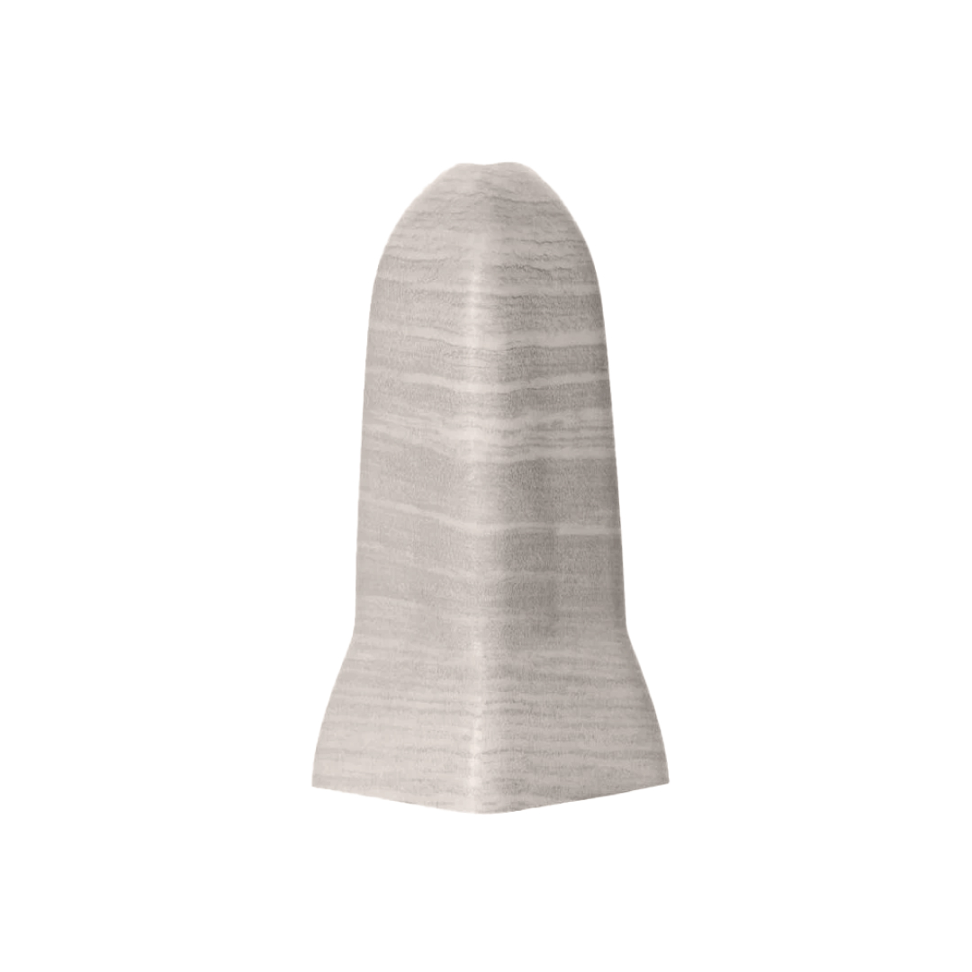 Угол изготовлен из ПВХ высокого качества, отличается устойчивостью к влажности, износу, деформациям и перепадам температурного режима в помещении. Он обеспечивает надежное крепление плинтусов без видимых швов или разрывов.
