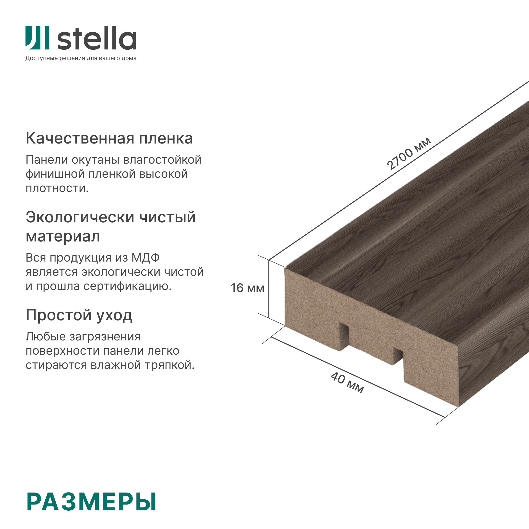 • Экологичная продукция — панели изготовлены из древесины из возобновляемых источников и имеют сертификат «Лесной эталон».