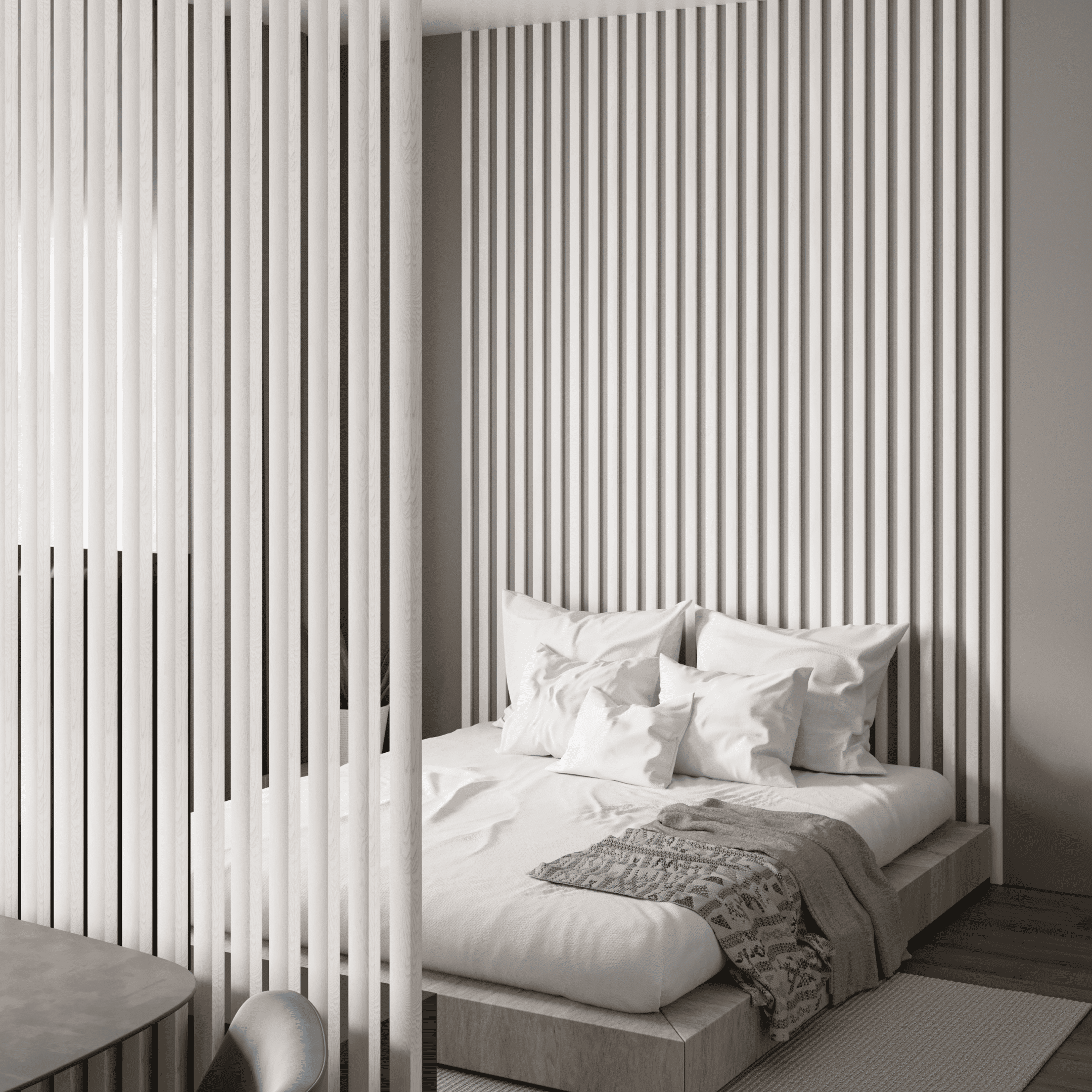 Интерьерные рейки МДФ Stella, форма Бриона, коллекции Light в светлом оттенке Ясень Айвори - как приглушенный лунный свет.