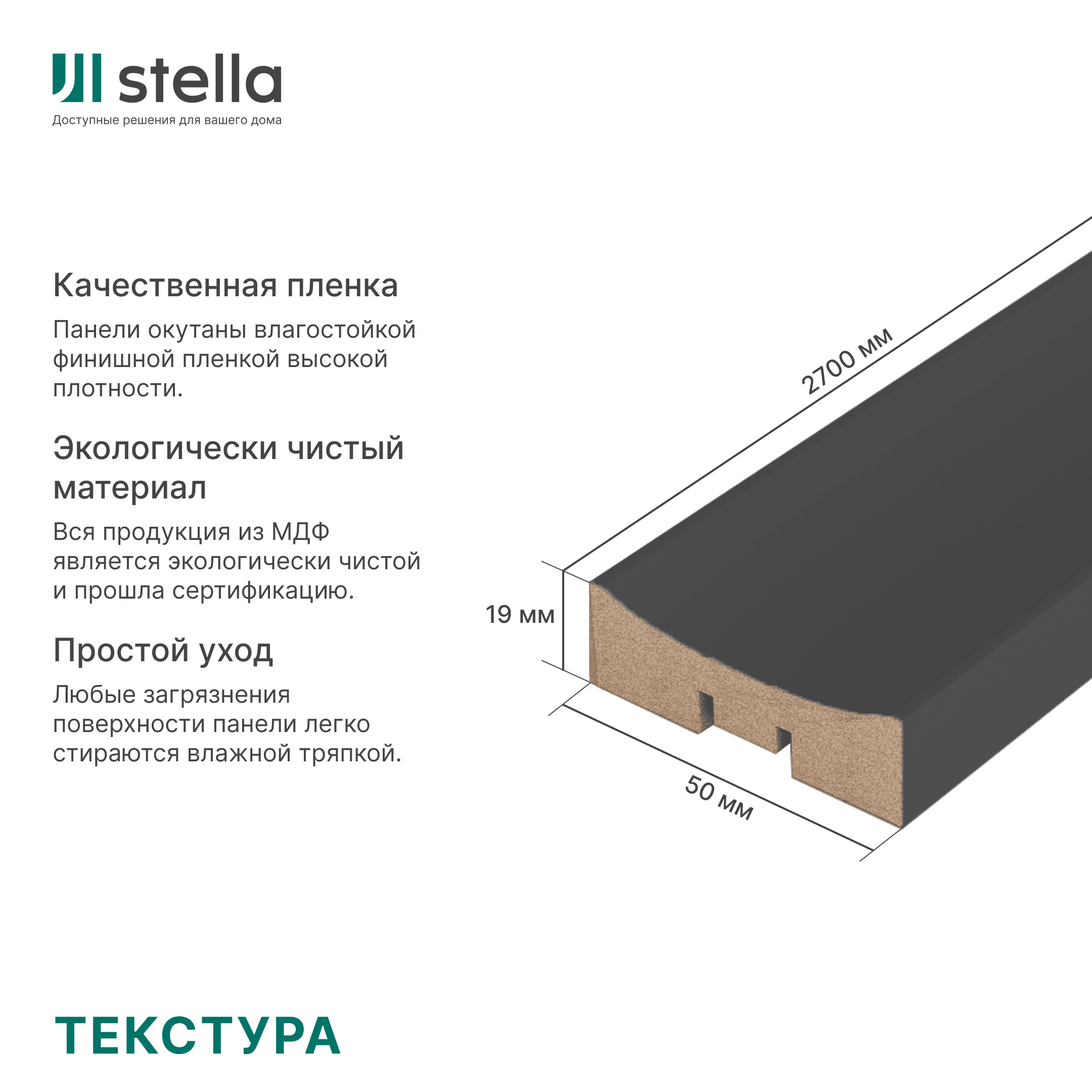 2К Интерьерная Рейка МДФ STELLA Планкен Рекесс De Luxe Black Lead 19*50*2700 (уп.4 шт.)
