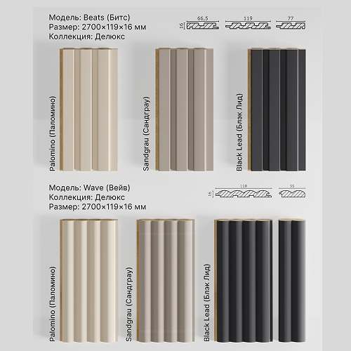 - Модели Wave и Beats для тех, кто ищет динамику и плавность линий в интерьере. Эти панели создают уникальный визуальный ритм, делая стены не просто фоном, а частью интерьера.