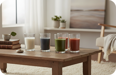 Ароматическая свеча помещена в изящный прозрачный стакан 50 мл, дизайн которого навеян формой классической конусообразной рюмки.