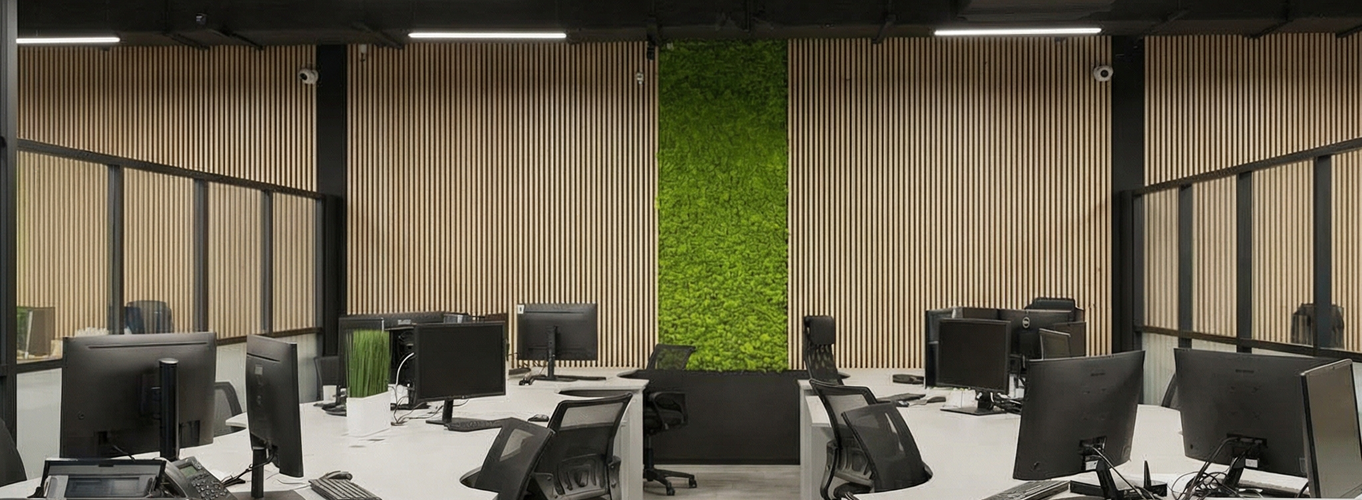 - Для кабинетов и лаунж-зон: нужен уют и премиальный вид. Реечные акустические панели с текстурой дерева создадут комфортную и стильную атмосферу.