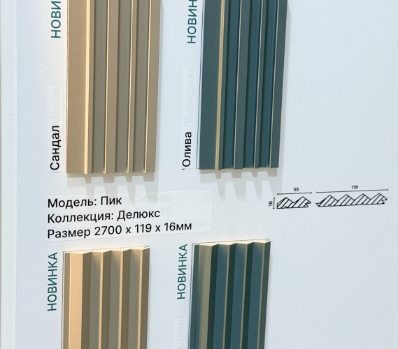 Центральное место в экспозиции заняли новинки материалов для отделки и декора стен на основе МДФ. Мы представили сразу несколько моделей реечных панелей, которые позволяют решать самые смелые дизайнерские задачи: